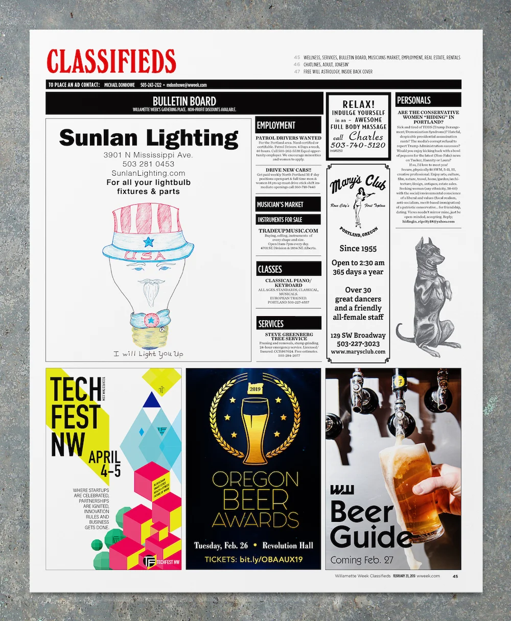 Ads run in Willamette Week, with expanded, three dimensional imagery.